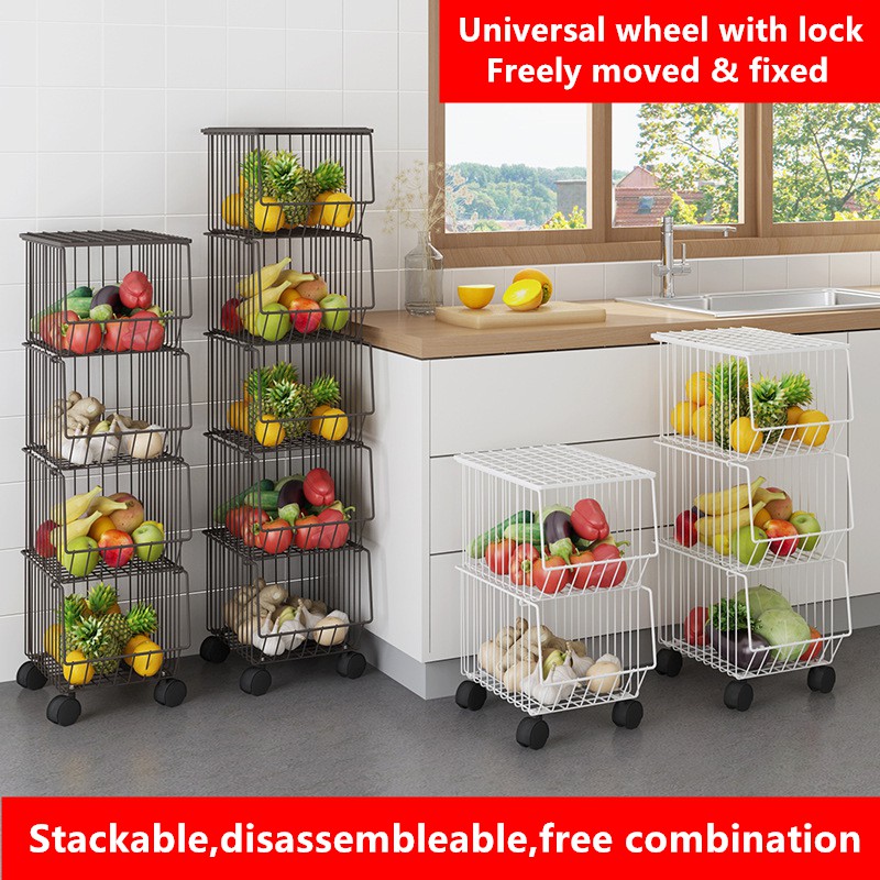 New Design Black Metal Wire Mesh Stackable Storage Kitchen Fruit Vegetable Basket With Wheel - Buy Metal Wire Basket,Wire Mesh Basket,Wire Kitchen ...