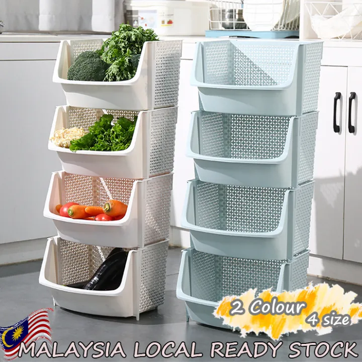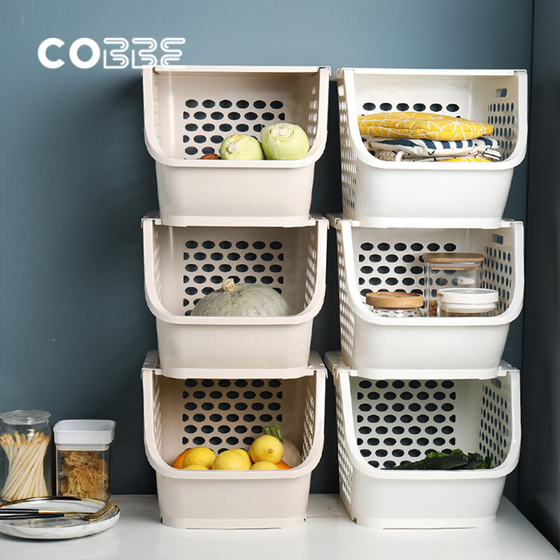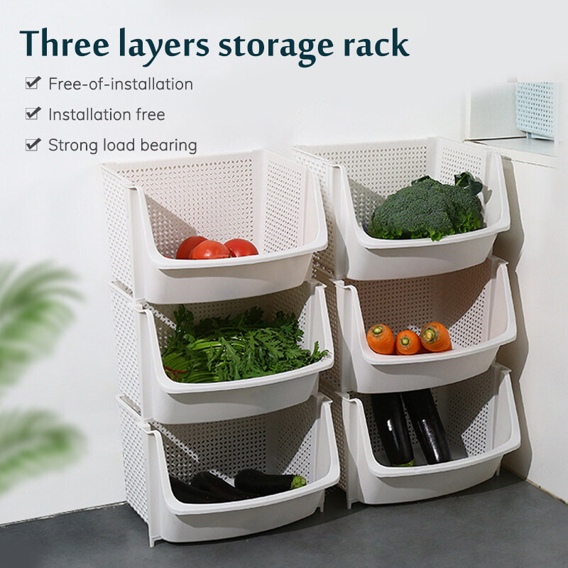Stackable Household Storage Basket Rack Multi-Layer Stackable Fruit and Vegetable Basket Plastic Kitchen Drain Basket Kitchen Storage Shelf Rack ...
