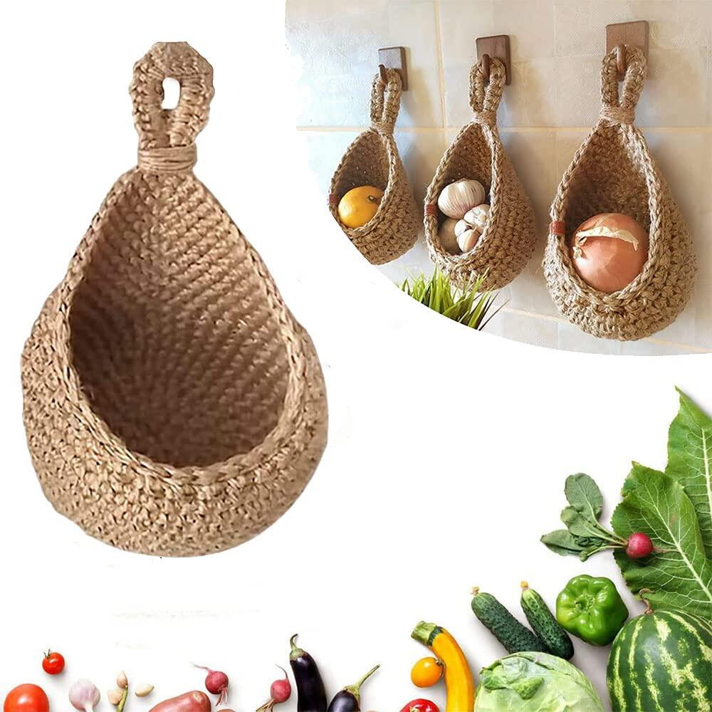 Clearance Hanging Wall Vegetable Fruit Baskets, Teardrop Hanging Basket ... Hand-woven, these baskets are carefully crafted by hand, using eco-friendly materials, woven from high-quality Vietnamese jute rope. Boho style, this is a boho style product to help you make better use of your space, such as kitchen, garden, indoor and outdoor, living room corridor.