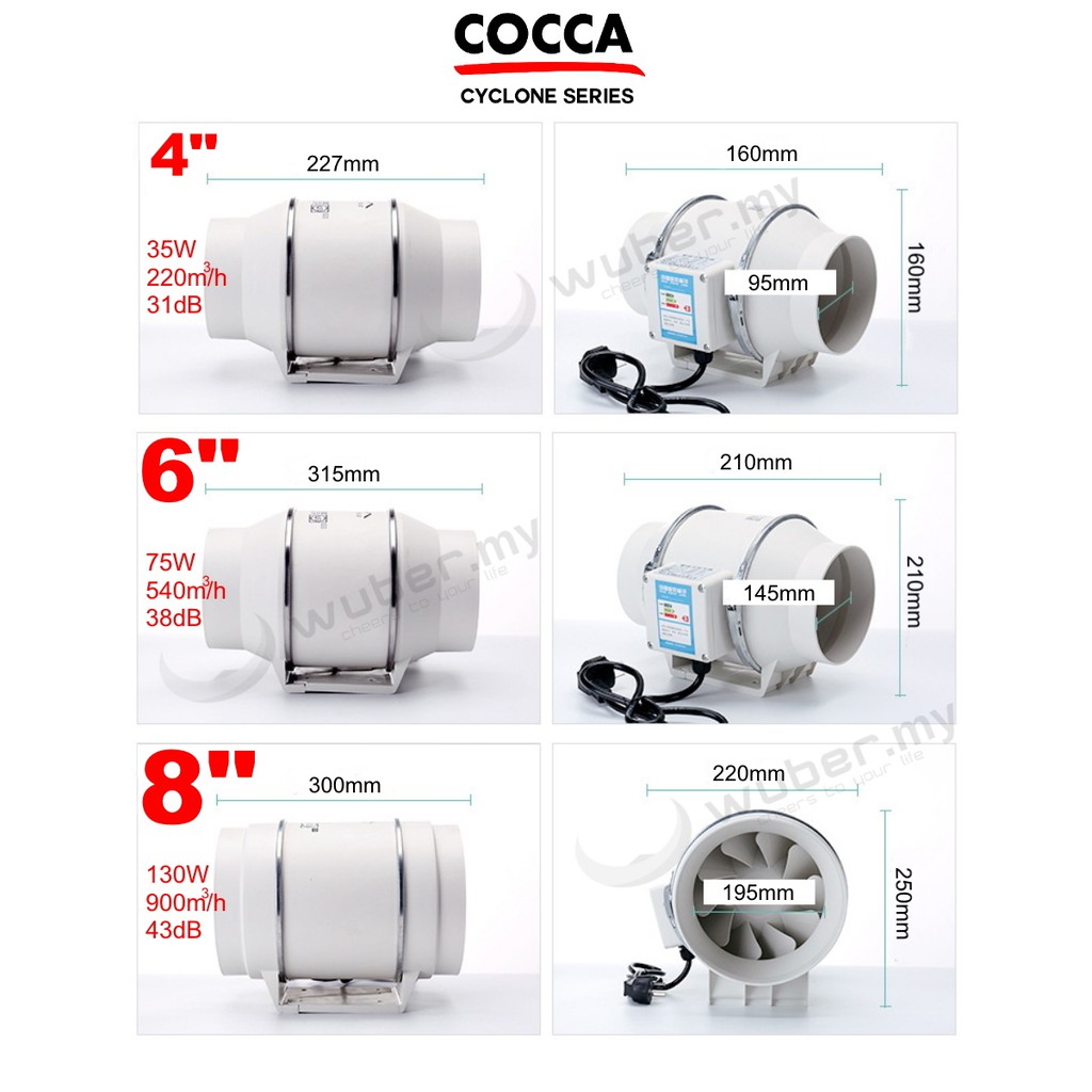 COCCA 4"/ 6"/ 8" inch High Suction Power Inline Duct Booster Fan Exhaust Fan Extractor Fan Ventilation Fan Kipas Ekzos