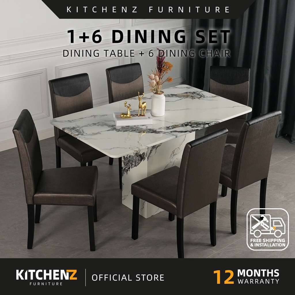 Dining Table Sets, 6 Piece Dining Table and Chairs Sets, Modern Style Kitchen Table Set, Marbled Veneers Tabletop and V-Shaped Table Legs, for Dining ...