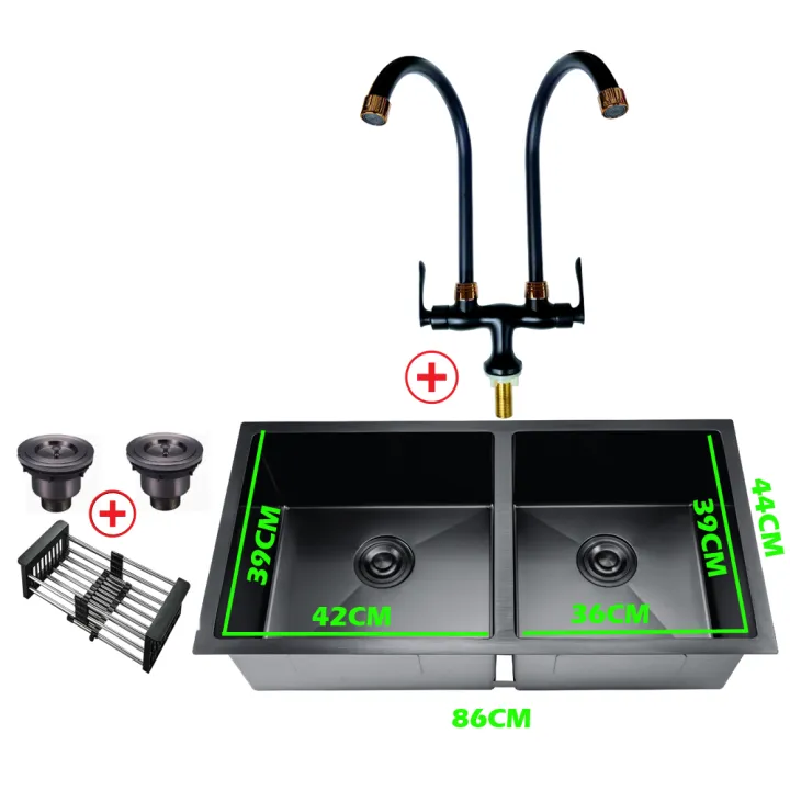 Cabana CKS7407 304 Stainless Steel Material Kitchen Sink Double Bowl NANO Matt Black Under Mount . come with Multi-FUNCTIONAL DRAIN TRAY